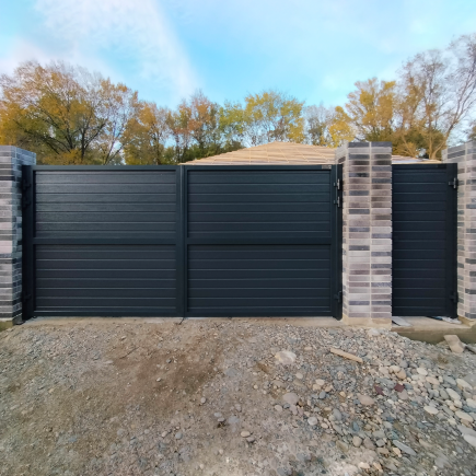Ворота Alutech въездные распашные с калиткой